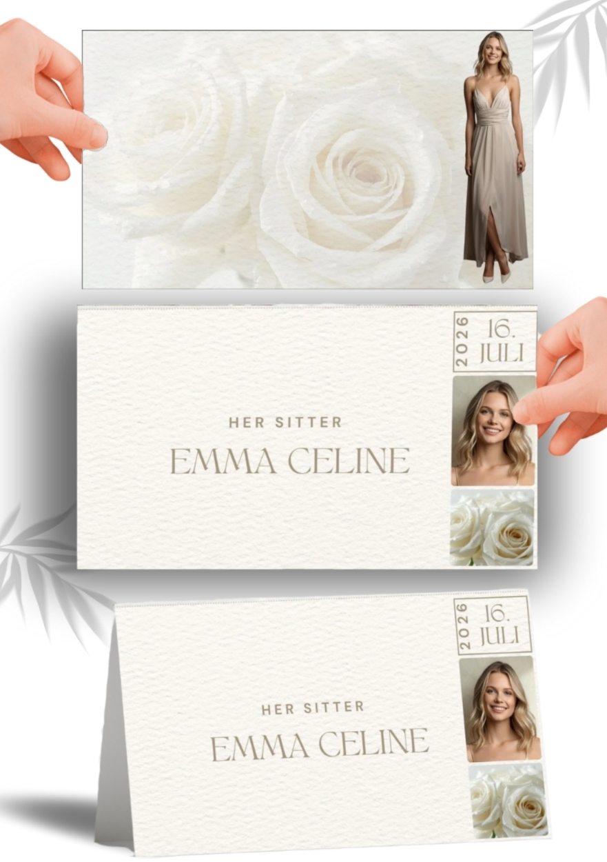 - Bordkort i valgt størrelse, tekst og design.