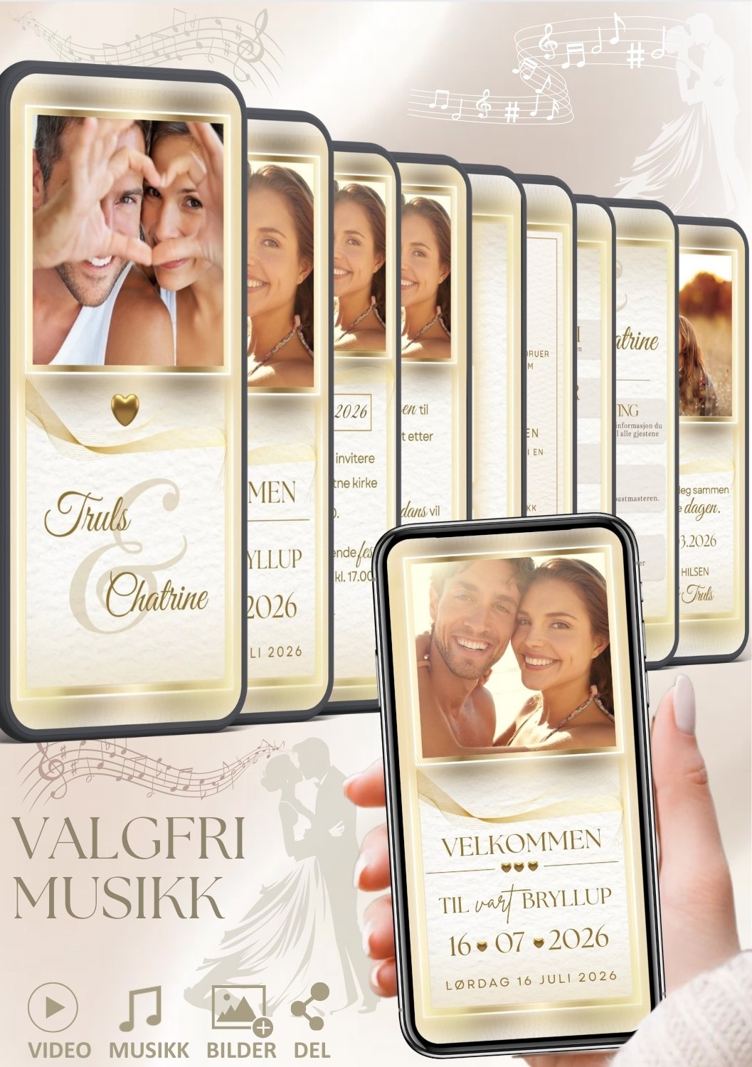 - Videoinvitasjon du kan sende rett til alle gjestenes mobil.
